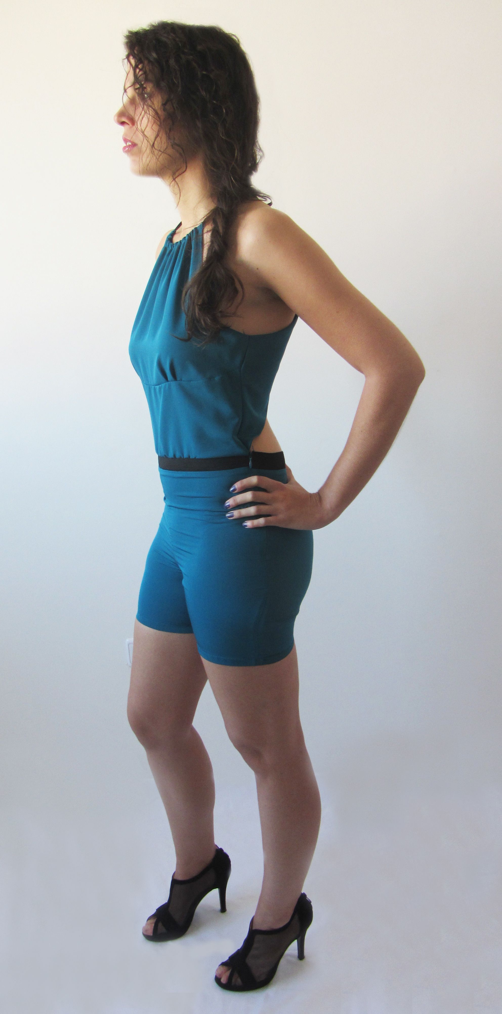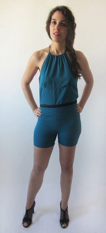 Mono con escote redondo y espalda cruzada.