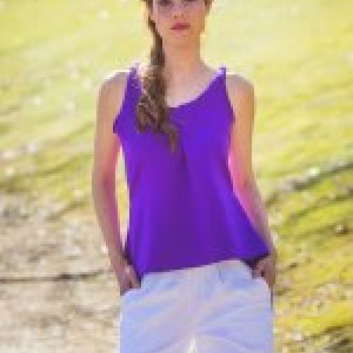 Top de punto con escote corazón. Lleva un pliegue en el delantero y en los costados. Los tirantes van retorcidos y cruzados en la espalda.